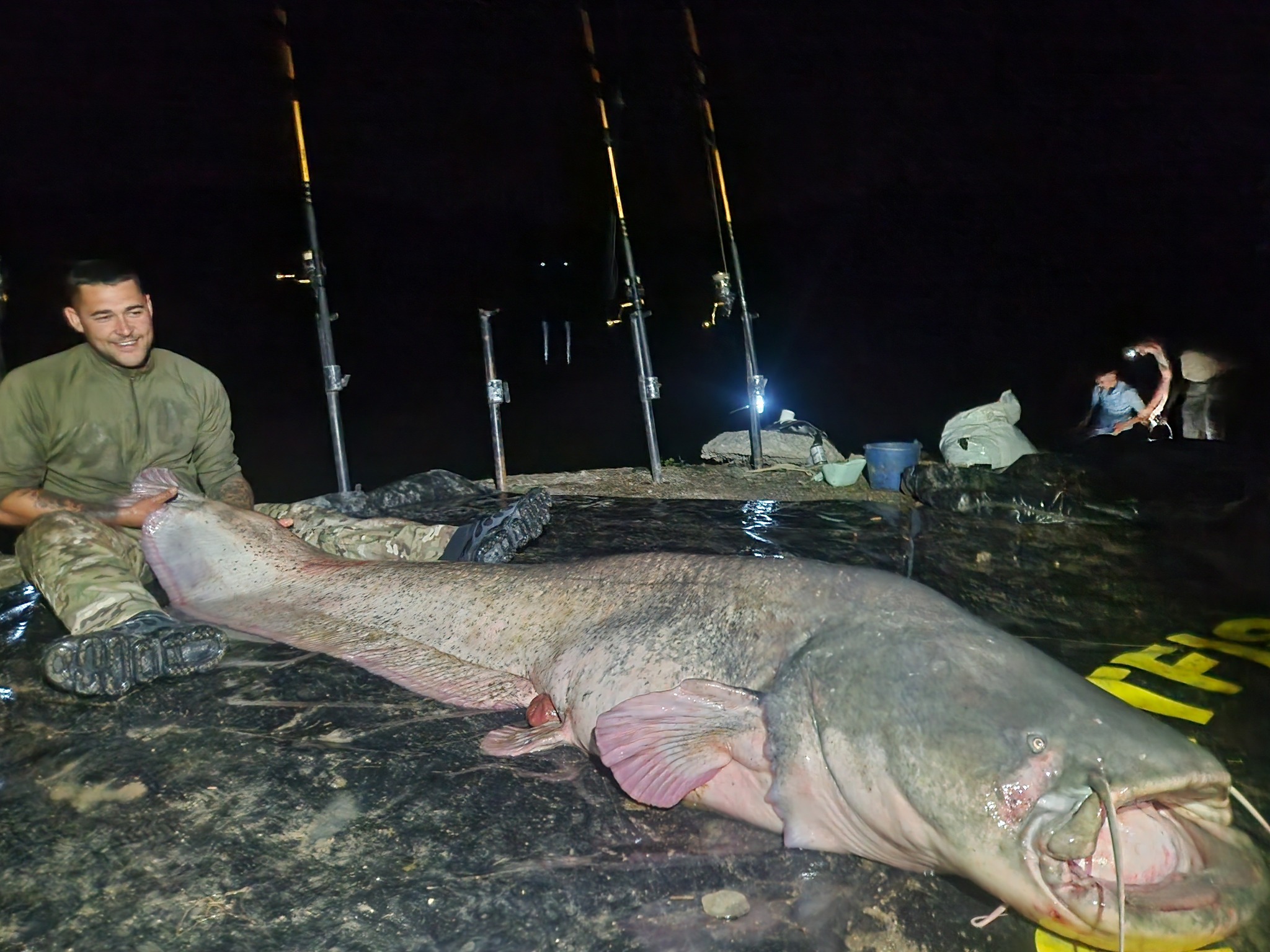 Η ομάδα των φίλων χρειάστηκε να συνεργαστεί για να καταφέρει να φέρει το τεράστιο γατόψαρο στην όχθη, χρησιμοποιώντας έναν αυτοσχέδιο μηχανισμό για να το σύρουν με ασφάλεια στη στεριά γύρω στις 9:30 το βράδυ.