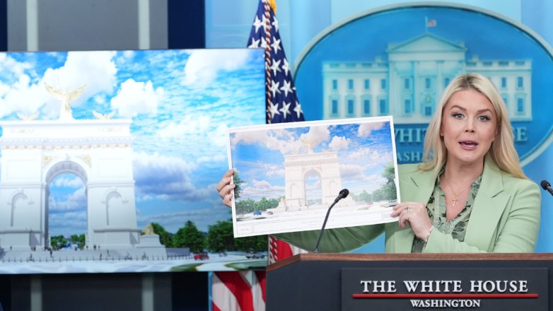 «Προς τιμήν αυτής της ιστορικής περίστασης», ο πρόεδρος Ντόναλντ Τραμπ και η κυβέρνησή του θα υποβάλουν σχέδια για την «Αψίδα του Θριάμβου των Ηνωμένων Πολιτειών», είπε η Λέβιτ.